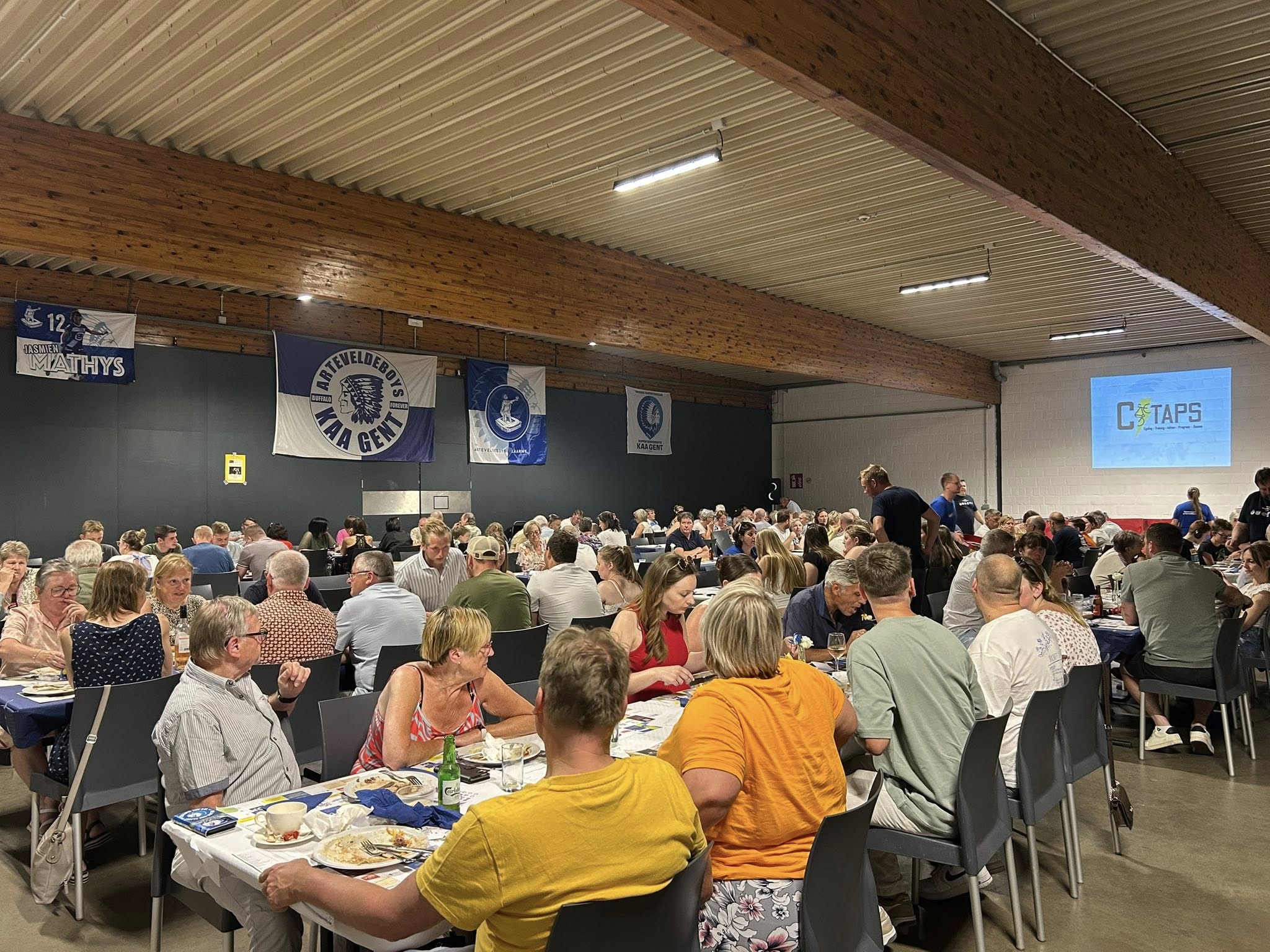 Liefst 734 personen daagden op om hun blauwwitte sympathie te uiten via spijs en drank.